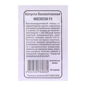 Семена Капуста Мегатон F1 б/к Агрофирма Марс 9483365