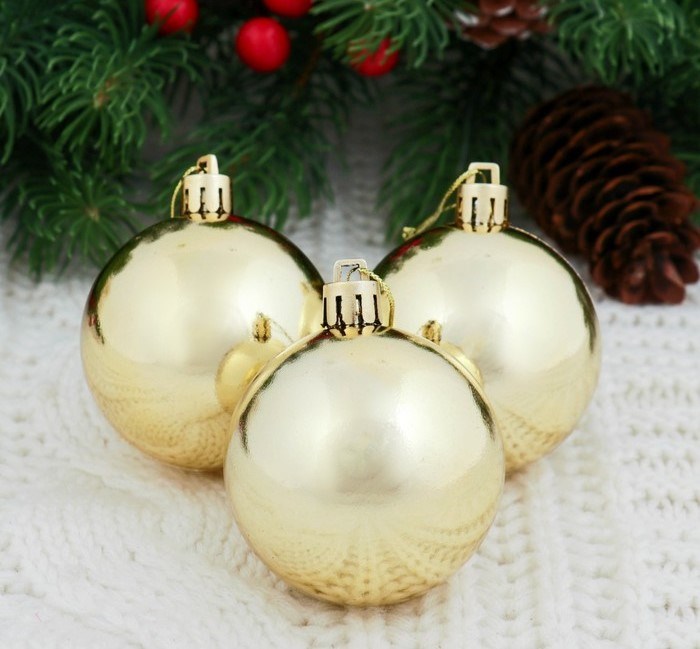 Набор шаров пластик d-6 см, 6 шт Глянец золото 735664