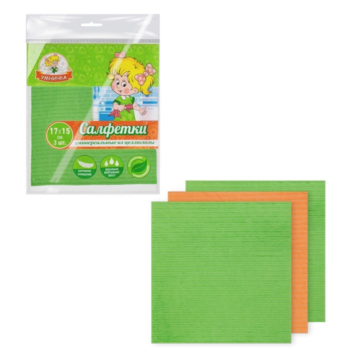 Салфетка бытовая Умничка 3шт целлюлоза 17*15 1*60