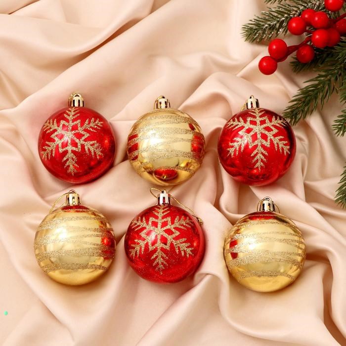 Набор шаров пластик d-6 см, 6 шт Снежная феерия ассорти золотисто-красный 6536827
