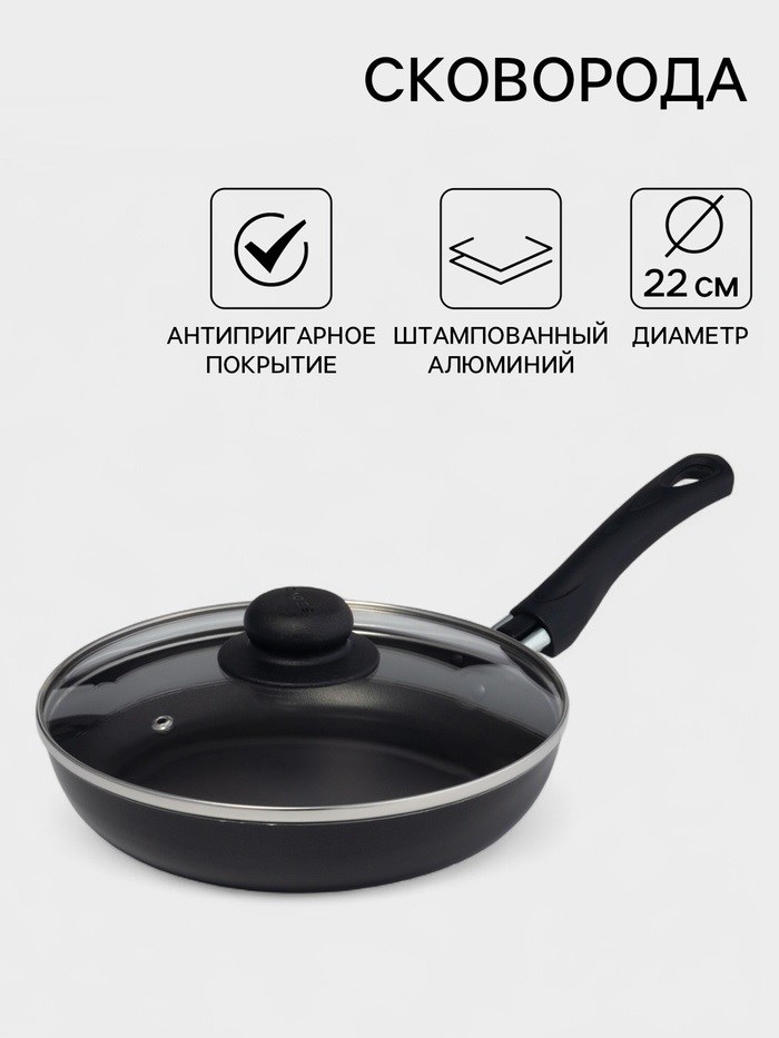Сковорода 22см Consu стеклянная крышка антипригарное покрытие цвет чёрный 689054