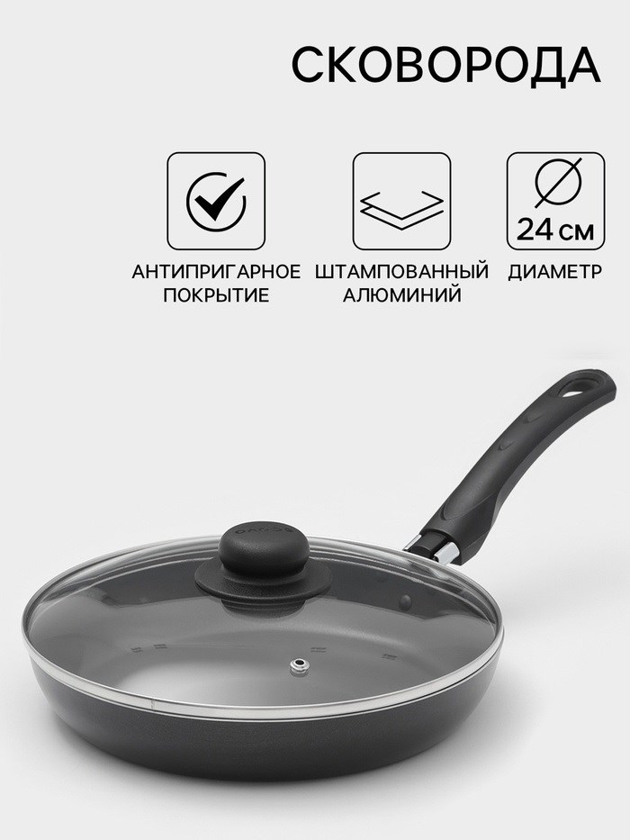 Сковорода 24см Promo стеклянная крышка пластиковая ручка антиприг покрытие 2390225